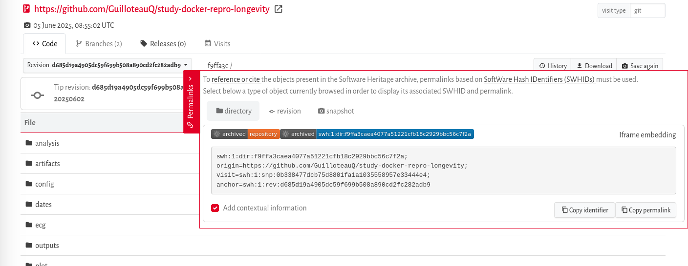 https://archive.softwareheritage.org/swh:1:dir:f9ffa3caea4077a51221cfb18c2929bbc56c7f2a;origin=https://github.com/GuilloteauQ/study-docker-repro-longevity;visit=swh:1:snp:0b338477dcb75d8801fa1a1035558957e33444e4;anchor=swh:1:rev:d685d19a4905dc59f699b508a890cd2fc282adb9